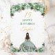 Cette carte d'anniversaire élégante et glamour peut être personnalisée avec un nom ou un titre tel que fille, petite-fille, nièce, amie, etc. Le design présente une belle princesse aux cheveux foncés dans une robe de bal vert sauge. Le texte combine une écriture manuscrite et des polices sans empattement modernes pour un look classe et sophistiqué. Les arrangements floraux et les confettis dorés créent le mélange parfait de rustique et de chic.