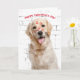 Chien d'or avec rouge à lèvres embrasse sur arrière - plan blanc avec motif en brique. Arrière - plan blanc peut être changé.