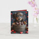 Carte Saint-Valentin chiot teckel cœurs rouges