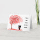 Carte Saint Valentin avec un mignon chat noir tenant un coeur et debout à côté d'un arbre cardiaque avec les mots "Je t'aime de tout mon coeur"