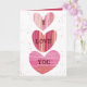 Carte de la Saint-Valentin moderne. Présentant 3 cœurs créés à l'aquarelle dans une gamme de rouges à rose pâle sur fond blanc avec une texture d'éclaboussure à l'aquarelle. À l'intérieur de cette carte se trouve un grand cœur avec du texte sur fond rouge. Facile à éditer avec votre nom.