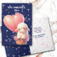 Un adorable petit agneau blanc se promène dans le panier d'une montgolfière de coeur sur le devant de la carte Valentine de cet enfant. Le ballon vole contre un arrière - plan bleu foncé aux coeurs flottants. En haut se trouve le texte blanc qui dit "Pour une magnifique nièce", mais vous pouvez facilement le changer, si vous le souhaitez. L'intérieur a une répétition des coeurs flottants avec votre texte personnalisé. Cette carte est particulièrement appropriée pour les filles ou les garçons jusqu'à 5 ou 6 ans, et peut être facilement adapté pour n'importe quel enfant; il suffit de changer le texte!