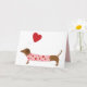 Ce petit teckel tient son ballon et est prêt à célébrer la Saint-Valentin. Personnalisez le message intérieur pour tous vos Saint-Valentin.