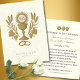 Une carte de prière mariage catholique sacrée et élégante avec la Sainte Eucharistie symbolisée par le chalice IHS radiant, avec du blé doré, du raisin et des anneaux mariages en dessous, un riche reflet de la présence du Christ au coeur du sacrement de la Sainte Mariage. Personnalisé avec les noms de la mariée et du marié et la date du mariage, et associé à une prière nuptiale révérente au verso. Un souvenir intemporel pour que les invités se souviennent de votre sainte union.