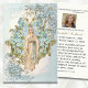 Souvenez-vous de vos proches en prière avec cette belle image traditionnelle de la Vierge Marie, Notre Dame de Lourdes avec Bleu Oubliez-moi Nots. Tout le texte et les polices peuvent être modifiés.