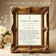 Doté d'une belle image catholique traditionnelle de l'image du betrothal de Marie et Joseph avec une bordure décorative en or accentuée de fleurs blanches et d'un arrière - plan en dentelle blanche. Une prière est à l'arrière pour la mariée et le marié. Tout le texte et les polices peuvent être modifiés.