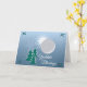 Belle carte de voeux d'hiver avec des arbres à feuillage persistant enrobés de neige, des feuilles saints, le soleil et la lune d'hiver et un flocon de neige sur un arrière - plan bleu. Texte personnalisable : "Bénédiction de Yuletide" - changer comme souhaité. À l'intérieur, vous pouvez inclure un message personnalisé.