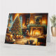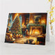Un salon cosy avec cheminée décoré pour les vacances de Noël.