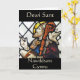 Accueillez vos amis pratiquant le gallois avec cette carte élégante de la Saint-David avec une très vieille image en vitrail de St. David (Dewi Sant), Patron Saint du Pays de Galles (Nawddsant Cymru). A l'intérieur à gauche se trouve l'hymne national gallois qui remue, à l'intérieur à droite, un salut bilingue à la Saint-David's Day.