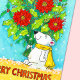 Envoyez cette mignonne carte d'ours polaire pour souhaiter un joyeux Noël à vos amis et à votre famille. Sur le côté droit de cette carte, un ours polaire tient un bouquet géant de Poinsettias rouges, une fleur traditionnelle de noël souvent utilisée dans la décoration florale en hiver. Le petit ours porte une écharpe jaune vif, attachée avec un noeud simple à l'arrière de son cou. Il se tient devant un blackground bleu et sur une fleur jaune sur laquelle est écrit à la main des lettres "Joyeux Noël". Les lettres sont marron. De minuscules flocons blancs sont éparpillés sur le tableau.