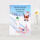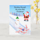 This whimsical Christmas design showcases Santa Claus cheering as a joyful snowman scores a strike on his frosty bowling lane. This is a perfect Christmas card for bowlers.