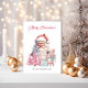 Sur la carte de Noël extraordinaire, un Père Noël vintage et un casse-noix se tiennent parmi les cadeaux enveloppés de papier bleu avec des arbres de Noël roses