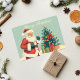 Célébrez la magie de Noël avec cette charmante carte du Père Noël à côté d'un sapin décoré. Parfait pour répandre la joie des vacances en famille et entre amis!