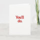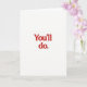 This Valentine’s Day card shares affection with a dry sense of humor and a confident message. Centered on the card, the words “You’ll do.” appear in a deep romantic red, written in a classic serif-style font that adds a timeless feel. The lettering stands out clearly against a bright white background, drawing your eye straight to the message. A subtle paper-like texture adds warmth and depth, giving the card a handmade look. The period at the end adds emphasis, turning a short phrase into a statement of commitment and acceptance. This card is perfect for couples who appreciate honesty, humor, and love that doesn’t need grand gestures to feel meaningful.