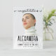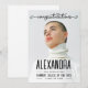 Cette carte photo moderne et minimaliste comprend une image éditable pleine page et un script de calligraphie blanche élégant indiquant « félicitations ». Personnalisez avec votre propre photo, nom et date dans une typographie simple et moderne pour une carte d'annonce de remise de diplôme personnalisée célébrant une réussite incroyable,