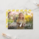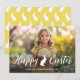 This personalizable photo template card is designed for Easter. “Happy Easter” appears in a lovely script font over your photo with Destei’s adorable bunny silhouette placed between the words for a subtle Easter touch. There’s a personalizable text area for a name and year with a subtle overlay beneath the text to make it stand out more. On the back, the bunny silhouette creates a playful pattern over a yellow background which can be customized to match your photo’s color scheme. A cute, stylish and personalized way to send Easter greetings.