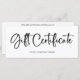 Ce certificat cadeau élégant et moderne est doté d'un arrière - plan blanc simple et propre, avec une typographie manuscrite noire tendance et élégante.