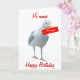 Une carte d'anniversaire entièrement personnalisable. Modifiez les mots, ajoutez un nom. Un goéland tenant un cadeau, livré par courrier aérien, et un escargot à l'intérieur, Snail mail bien sûr.
