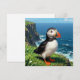 A sweet puffin notecard that is blank on the back with a cute illustration of a puffing sitting by the sea on an seaside dune or ledge.