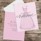 Demandez à vos meilleures filles en style avec cette carte de proposition de femme de chambre mariage, avec une robe d'aquarelle rose mignonne et un script de calligraphie élégant. Conçu avec une jolie typographie et un style fantaisiste amusant, cette carte est la façon parfaite de dire, "Serez-vous ma demoiselle d'honneur ?" L'élégante illustration simple de robe ajoute une touche de charme, en faisant un gardien unique, créatif, chic et féminin pour votre fête de mariée. Achetez maintenant pour une proposition sincère!