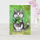 Un chat noir et blanc tenant a trois-a poussé des feuilles shamrock dans sa bouche, pour le jour de St Patrick, ou juste pour l'amusement !