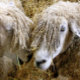 Deux beaux moutons Cotswold capturés photographiquement dans un moment amusant et humoristique parlant entre eux. Les moutons Cotswold proviennent des Cotswolds en Angleterre et sont élevés pour leur laine et leur viande. Ils ont de longues fèces avec une teinte presque dorée.