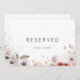Cette simple enseigne fleurie réservée est parfaite pour un mariage rustique. La carte est recto-verso (tirages sur les deux côtés). Le design boho fantaisiste est composé de fleurs rustiques roses rousses, bordeaux et marsala aux tonalités sobres et romantiques. Utilisez ces cartes pour réserver des chaises ou des tables lors de votre cérémonie de mariage, de votre réception ou de tout événement.