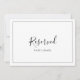 Ce panneau minimaliste réservé est parfait pour un simple mariage. La carte est recto-verso (tirages sur les deux côtés). Le design romantique moderne présente une typographie classique en noir et blanc associée à une calligraphie rustique mais élégante avec un style vintage lettré à la main. Personnalisable dans n'importe quelle couleur. Gardez le design simple et élégant, en l'état, ou personnalisez-le en ajoutant vos propres graphiques et artwork. Utilisez ces cartes pour réserver des chaises ou des tables lors de votre cérémonie de mariage, de votre réception ou de tout événement.