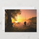 Carte Silhouette du pêcheur sur le lac au coucher du sol