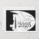 Une silhouette d'une jeune femme dans son casquette et sa robe. Les motifs floraux sont utilisés dans l'arrière - plan. Le dos a un arrière - plan noir avec des lettres blanches pour les annonces de remise de diplômes.