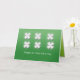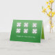 Six shamrocks blancs souhaitant une Bonne St Patrick's Day sur un arrière - plan plus foncé à dégradé vert. L'intérieur dit : "Je vous souhaite un sourire sur le visage, un saut dans votre pas, et de la joie toute l'année". Personnalisez le nom du ou des destinataires et votre nom.