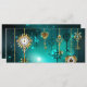 Or, clés antiques avec engrenages et cadrans accrochés sur chaînes dorées sur arrière - plan vert lumineux.