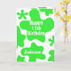 C'est une carte de 11e anniversaire très mince avec une fine mousse verte à l'avant, à l'intérieur et à l'arrière pour ajouter un peu de ludique à l'anniversaire de n'importe quel enfant! Assurez-vous de voir les photos de cette carte d'anniversaire amusante pour le garçon d'anniversaire ou la fille d'anniversaire. Vous pourrez facilement personnaliser le front avec l'âge et le nom de l'anniversaire. À l'intérieur lit un message d'anniversaire mignon, mais peut être facilement édité. Le dos a des éclaboussures d'un design mince et un endroit pour ajouter l'année d'anniversaire ou tout autre texte que vous voudriez. Cette carte verte est idéale pour une carte d'anniversaire de fils, une carte d'anniversaire de petit-fils, une carte d'anniversaire de petite-fille, une carte d'anniversaire de fille et plus encore!
