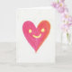This cute Valentine's greeting card features a hand-drawn heart character centered on a white background. The heart fades from bright pink on the left to warm red on the right, with a simple, slightly uneven marker look. It has two round yellow eyes and a thick yellow smile that makes it look happy and friendly. Near the top of the heart, a few small reddish-orange lines stick out like tiny legs or little roots, adding a fun touch of movement. There isn’t any text on the card, so the heart’s face and colors do all the talking. The plain background keeps the focus on this sweet character and the warm, caring feeling it gives off ❤️