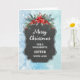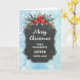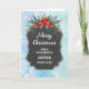 Joyeux Noël pour la carte soeur avec un motif en damier rustique et feuillage d'hiver avec poinsettias.