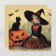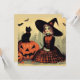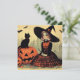 Carte Sorcière rétro Halloween et chat noir mignon