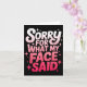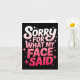 Carte Sorry For What My Face Said Funny Sarcastic Minima
