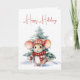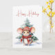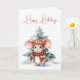 Aquarelle souris de Noël portant un casque avec pin dans des flocons de neige. Le texte est modifiable.