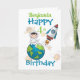 Une carte de design Space amusante pour un 4ème anniversaire avec un astronaute assis sur le monde avec une fusée spatiale à proximité et un arrière - plan de planètes et d'étoiles filantes. Un design amusant pour ces petits garçons qui auront quatre ans. Peut être personnalisé en modifiant le nom et l'âge puis ajouter votre propre message à l'intérieur. Une belle carte d'anniversaire pour un petit-fils ou neveu.