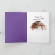 Cette carte, avec une toile d'araignée avec "Joyeux Anniversaire !" en parties scintillant violette tissée dans la toile, a été créée par l'araignée floue à l'intérieur. Cette araignée a l'air trop mignonne pour mordre (mais vous ne savez jamais). Le message à l'intérieur est : "J'espère que ça ne mord pas." Ton anniversaire ou l'araignée...