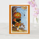 Carte de voeux Halloween vintage illustration d'une fille Citrouille effrayée par les fantômes et une araignée.