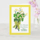 Cadre jaune avec tiges de fleurs shamrocks et jaunes. Tenu avec un arc jaune, vert et blanc (faux pas réel). St. Patrick's Day Souhaite une merveilleuse petite amie. Ajoutez au message à l'intérieur ou téléchargez une photo personnelle à imprimer à l'intérieur si vous le souhaitez. Art, image, et vers © Shoaff Ballanger Studios, 2021.