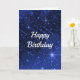 Des étoiles blanches sur un motif étoile de galaxie bleu vif. Le texte est modifiable.