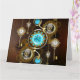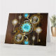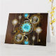Turquoise lenses with antique watch with brass gears and golden keys on rusty, brown background. Steampunk style.