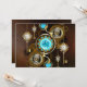 Turquoise lenses with antique watch with brass gears and golden keys on rusty, brown background. Steampunk style.