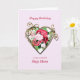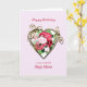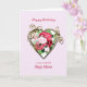 Une carte d'anniversaire romantique. Un tableau de rose est encadré par un coeur doré embelli. Donnez à votre mère pas un accueil d'anniversaire avec une belle peinture d'un bouquet de roses.