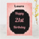Joli rose pastel et noir personnalisé carte de voeux design 21e anniversaire.