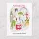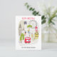 Avec les résidents de Londres à l'esprit, envoyez vos voeux de Noël sur cette carte postale pratique avec cette carte stylisée illustration de London Town, Angleterre avec des points de repère célèbres, taxi, bus, boîte téléphonique et personnages. Personnalisez facilement vos noms et salutations.