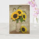 Sunflower bouquet in vintage pitcher with textured overlay for thinking of you.