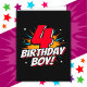 Ce design garçon de 4e anniversaire cool est parfait pour un thème de fête d'anniversaire super-héros ! Idéal pour n'importe quel garçon de 4 ans qui aime les super-héros de bande dessinée ou les méchants avec des super-pouvoirs ! Caractéristiques 4e anniversaire '4 Birthday Boy!' heureux anniversaire citation dans un thème de bande dessinée superhéros que le super anniversaire garçon de 4 ans AIMERA!